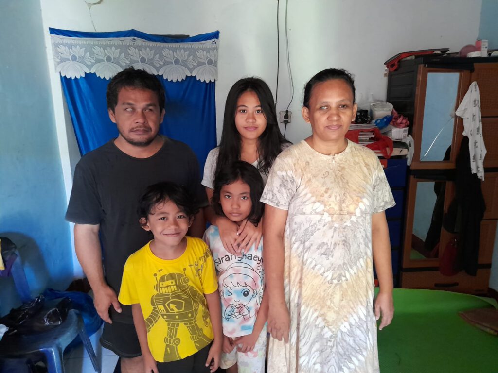 Het eerste gezin leeft op het platteland en heeft vanwege armoede hun 2 oudste dochters vanaf hun 7e jaar naar de panti/kindertehuis moeten sturen. Het zou hartverscheurend zijn om hun jongste dochter Inda ook uit huis te moeten sturen…… daarom steunen wij dit gezin maandelijks.
